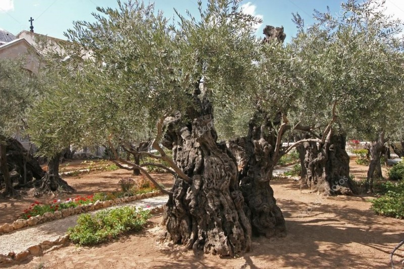 Diante do jardim está a Igreja de Todas as Nações, também conhecida como Igreja da Agonia, construída no sítio de uma igreja destruída em 614 pelos sassânidas, e que posteriormente foi reconstruída pelos cruzados e destruída novamente em 1219. Nas proximidades se encontra a Igreja Ortodoxa Russa de Santa Maria Madalena, com suas torres bulbosas douradas, no estilo russo-bizantino, construída pelo czar Alexandre III da Rússia em memória de sua mãe.