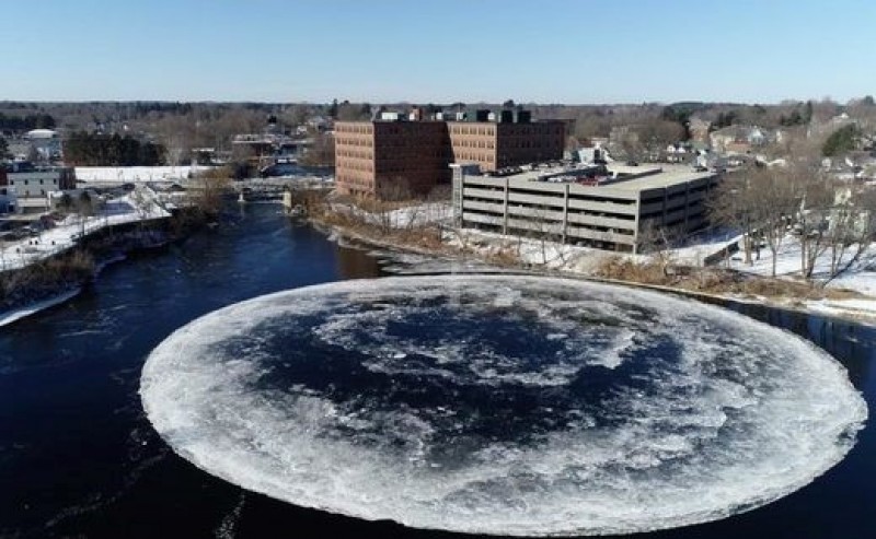 Intrigante disco de gelo gigante aparece girando em rio no Maine (EUA)