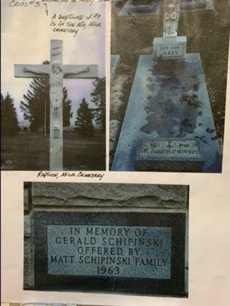 Jessick viajou para Bad Axe em 2004. Com a ajuda do presidente da sociedade histórica local, ele conseguiu localizar o nome do Rapson Cemetery fora de Bad Axe. Há uma estátua idêntica naquele cemitério que é o lugar de descanso final de Gerald Schapinski, a pessoa para quem a estátua originalmente deveria ser um memorial.