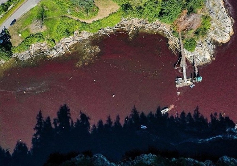 Esta não é a primeira vez que as águas de Vancouver se transformaram nesta vibrante cor vermelho sangue e isto é inteiramente devido a uma proliferação de algas. As algas produtoras desse fenômeno - Noctiluca scintillans - são erroneamente conhecidas como ‘maré vermelha’. Não deve ser confundido com envenenamento por maré vermelha em peixes. De acordo com a NOAA (National Oceanic and Atmospheric Administration), a intoxicação por maré vermelha ocorre quando as colônias de algas crescem fora de controle enquanto produzem efeitos tóxicos de moluscos bivalves e outros mamíferos marinhos em casos extremos. Se esses moluscos forem comidos por humanos, podem leva-los a ter doenças graves e potencialmente fatais, como ‘intoxicação paralisante por moluscos’ e ‘intoxicação amnésica por moluscos’.