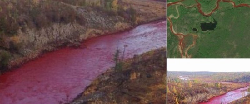 Moradores da cidade de Norilsk, na Rússia, levaram um susto na última terça-feira ao encontrar o rio Daldykan, vizinho à região, totalmente transformado com um fluxo de água vermelho sangue.