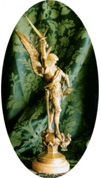 São Miguel Arcanjo, protegei-nos no combate; cobri-nos com vosso escudo contra os embustes e ciladas do demônio. Subjugue-o Deus, instantemente o pedimos, e vós, Príncipe da milícia celeste, pelo divino poder, precipitai no inferno a Satanás e aos outros espíritos malignos, que andam pelo mundo pela perder as almas. Amém.