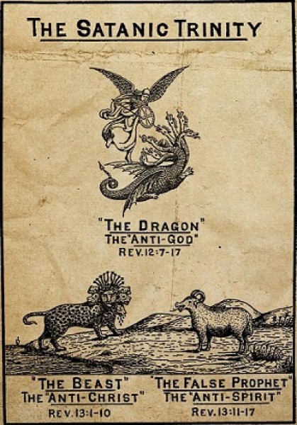 A Trindade Profana, em contraposição à Santíssima Trindade, é composta pelo Falso Profeta, o Anticristo e Satanás. Este perverso Trio são os maiores inimigos da humanidade, predito para o Fim dos Tempos, em que já estamos vivenciando.