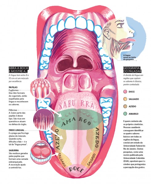 A língua vive nos extremos. Só nos lembramos dela na dor ou no prazer. Quanta aflição quando a mordemos sem querer. Quanta felicidade em um beijo apimentado. Na maior parte da vida, porém, esse músculo (sim, músculo!) exerce um papel tão discreto quanto fundamental: atua na quebra e digestão dos alimentos, na coordenação da fala e também serve como espelho do resto do organismo. Pode delatar situações mais triviais como uma febre ou sinalizar até mesmo quadros sérios como anemia, gastrite e diabete.